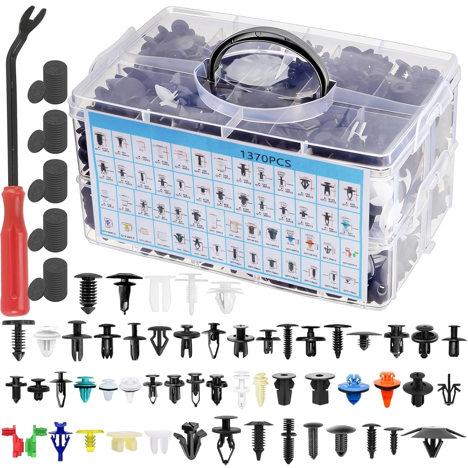 1430Pcs Car Interior & Exterior Retainer Clips - 47 Sizes Assorted Colorful Push Pins & Metal Screws. 3-Tier Box Auto Fastener Kit with Orange Pry Tools for Bumper Door (1430Pcs)