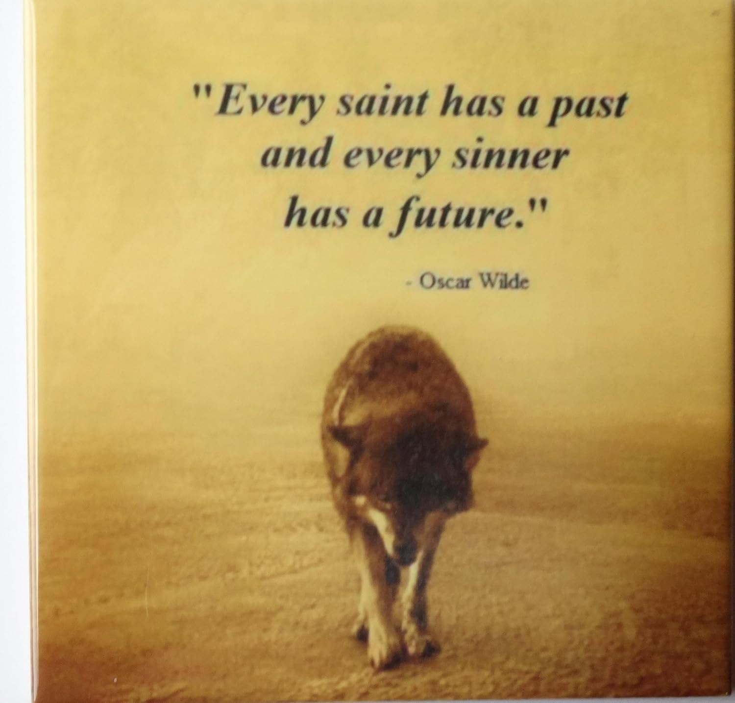 "Every Saint Has a Past and Every Sinner Has a Future" inspirational quote by Oscar Wilde Porcelain Tile Plaque 6 x 6 Ready to Hang Inside or Outside