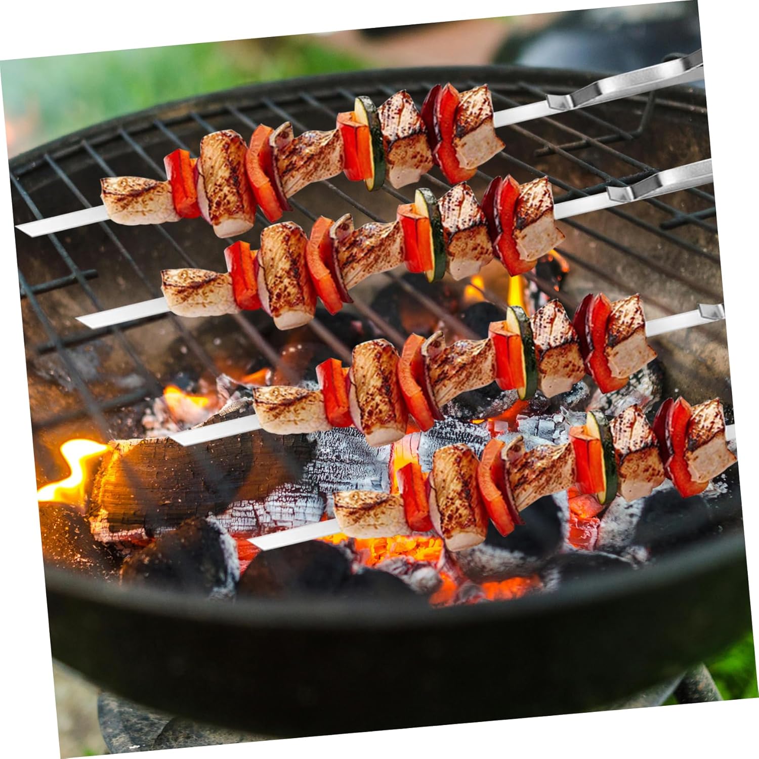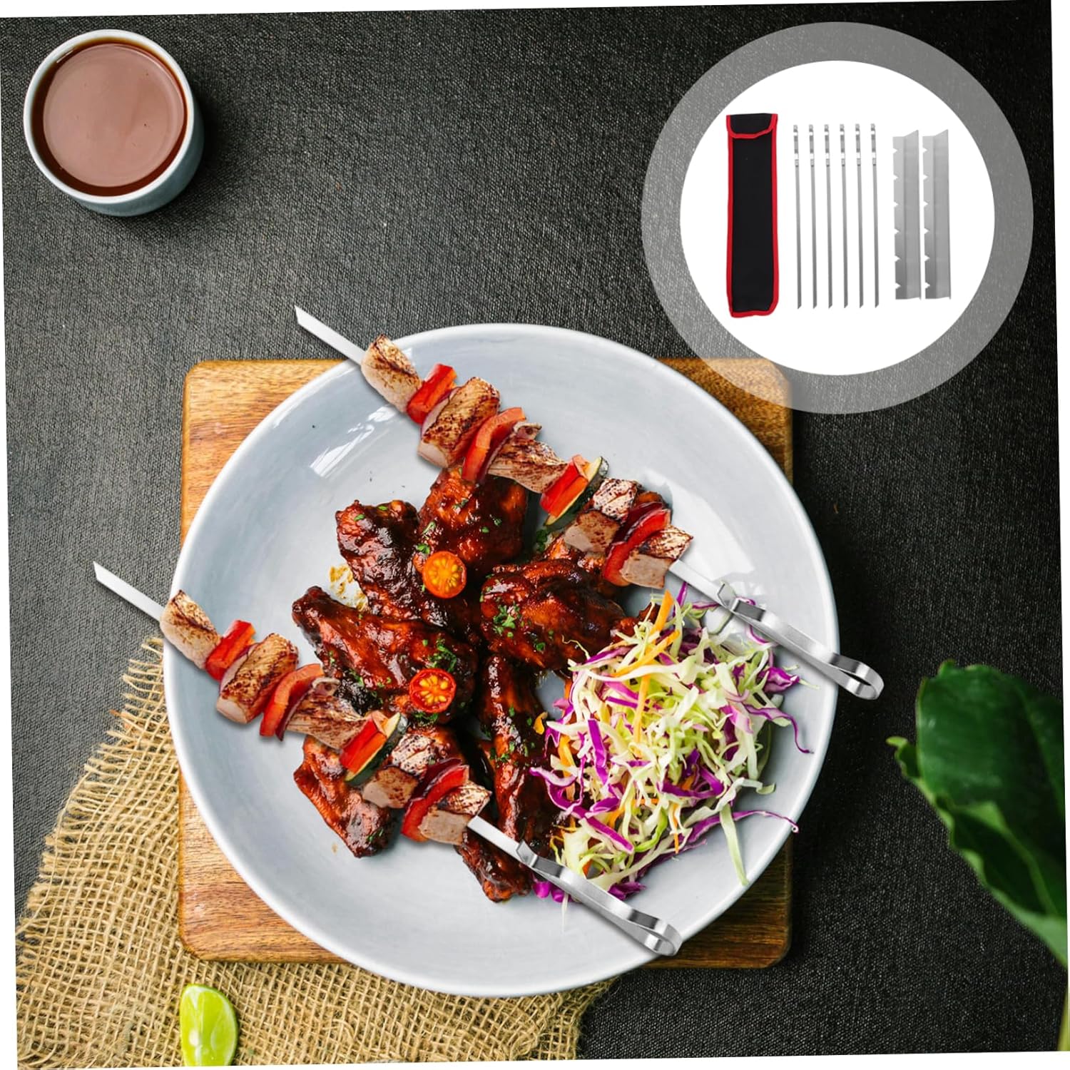Package Include 6 x Skewers 1 x Pair of Base 1 x Bag Features -Color:Silver reusable bbq skewer -Size:37.00X6.00X3.00cm/14.54X2.36X1.18in(base) kabob sticks - Compact and Portable:Unlike skewers, our metal skewers can be reused after washing. And can be reused for several times barbecue tools -Material:Stainless steel,cloth skewer sticks - Lightweight and Portable:The design can prevent people from being easily burned when grilling and provide more convenience for you kebab skewers -Size:43.00X9.00X2.00cm/16.90X3.54X0.79in(bag) meat skewers - Fine Workmanship:The barbecue skewer is made of stainless steel, which is non-slip and easy to control, insulated and safe and comfortable to use kebab sticks - Practical and Versatile: Suitable for outdoor BBQ party, barbecue, restaurant, camping and picnic grilling skewers - Creative Design: The kebabs maker makes it easier to thread skewers through meat and vegetables without getting hands oily grill skewers -Size:42.00X2.30X0.60cm/16.51X0.90X0.24in(skewer) metal skewers for grillingGoods Descriptionmetal skewers for grilling Special shape makes your cooking .barbecue tools All of these Sticks are made of stainless steel material.skewer sticks No worry about burned stick influence the meat's taste anymore.kebab skewers Suitable for BBQ lovers and home BBQ party holders.metal kabob skewers for grilling And the stainless steel can accelerate the transfer of heat, which is suitable for grilling or roasting