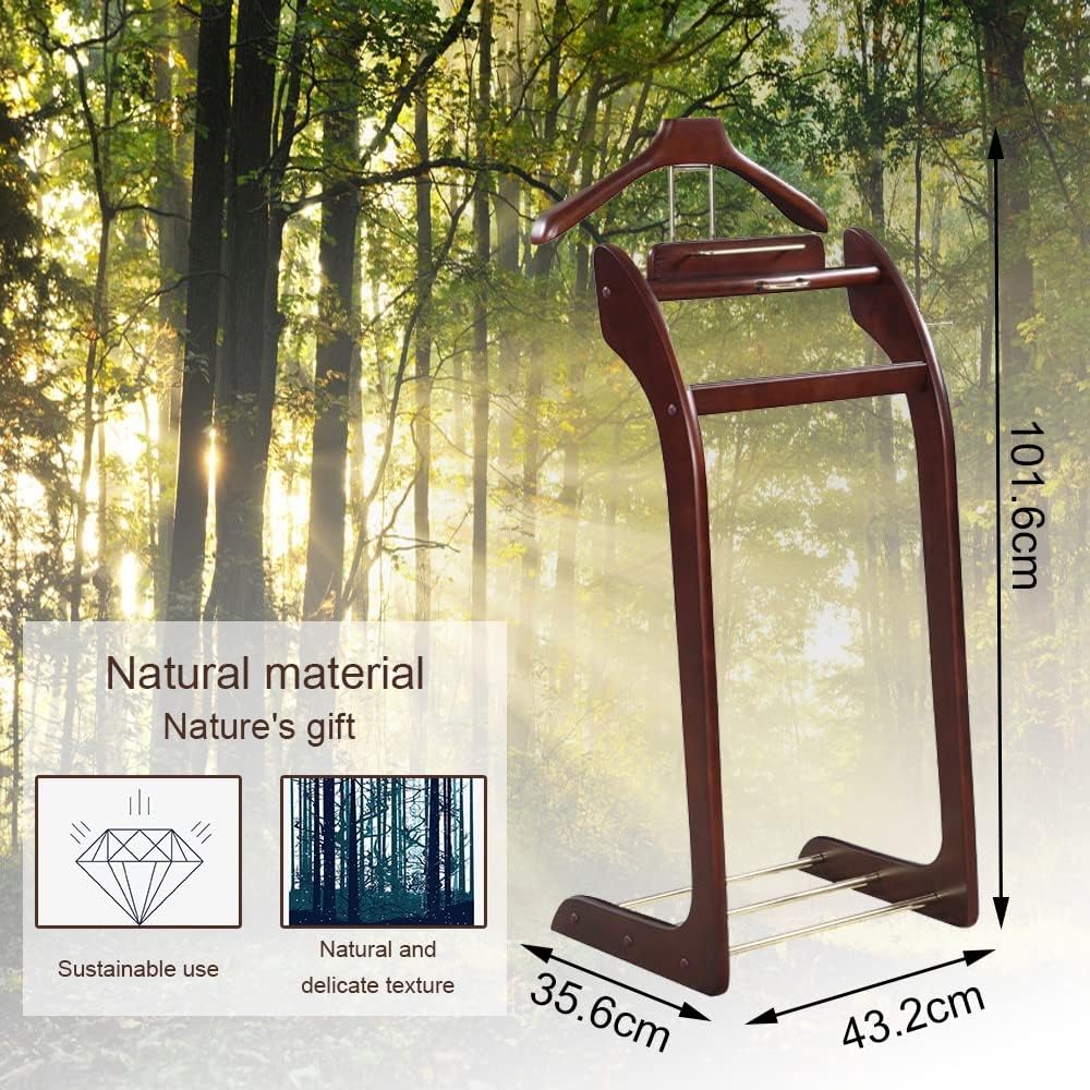 The fresh log touch and simple outline will save you more space. The high-quality valet is not only the stunning appearance, but also comes from the strict requirements on the details, so you can't put it down.Features:1.With this suit rack, your clothes will not wrinkle, which is very suitable for hanging suits.2.According to your needs and wishes, freely placed in each room, practical and Hard-wearing.3. With a sturdy base, stable load-bearing4. Curved wide shoulder hangerSpecification:Color: walnut colorMaterial: Solid woodSize: 43.2*35.6*101.6cmPackage include:1 x Suit Hanger RackWe are committed to high quality products and provide our customers with high quality customer service and user experience! !